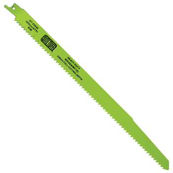 This heavy duty and versatile blade delivers fast, efficient nail and metal embedded wood, chipboard and timber up to 250mm, and Glass Reinforced Plastic and Epoxy up to 60mm. (Maximum working depth 250mm)