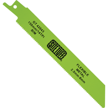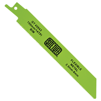 This flexible, bi-metal blade is designed to cut through thicker gauge steel and non-ferrous metals from 2.5mm to 8mm thick, and is suitable for use on sheet metals, pipes and profiles.(Maximum working depth 100mm)