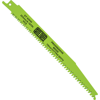 The progressive pitch and variable TPI of the blade provides clean, fast cutting of construction timber and softwoods, as well as chipboard, MDF and plywood. The pointed tip allows the blade to be plunged into the material with ease. (Maximum cutting depth 150mm)