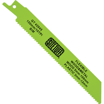 The progressively increasing tooth pitch ensures that the blade performs equally in both softer and harder materials. Including nail/ metal embedded wood and construction timber to its maximum working depth, non-ferrous metals between 2.2mm and 4.6mm thick, as well as plastic-based products to 12mm in thickness. (Maximum working depth 150mm)